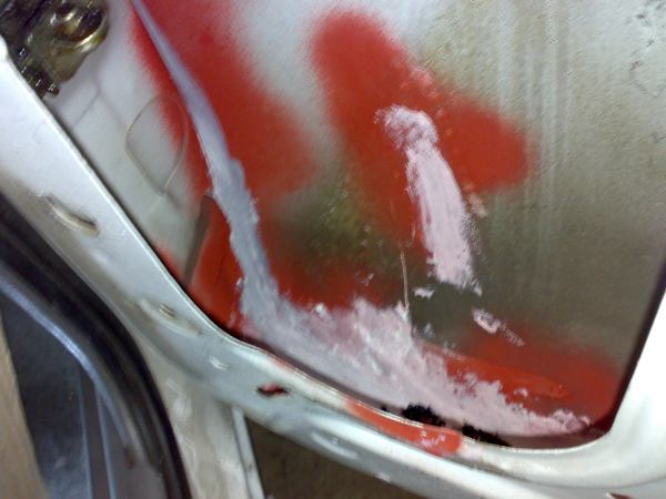 Von außen ein paar Rost hervorhebungen entfernt, etwas runter geschliffen, gespachtelt, geschliffen