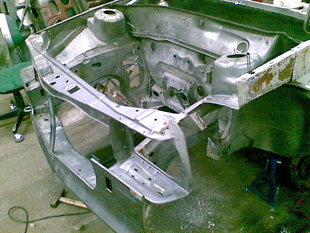 Mit Hilfe diesen Gestells wird erst die Front und das Domblech angesetzt. 2 Befestigungspunkte sind u.a. die Gewindelöcher in der Kühlertraverse, in denen die Zugstreben befestigt werden. Ganz zum Schluss setze ich dann den Dom wieder drauf. Da habe ich die 2 Punkte/Löcher oben und auf dem Domblech sind Markierungen in der der Dom hin muss