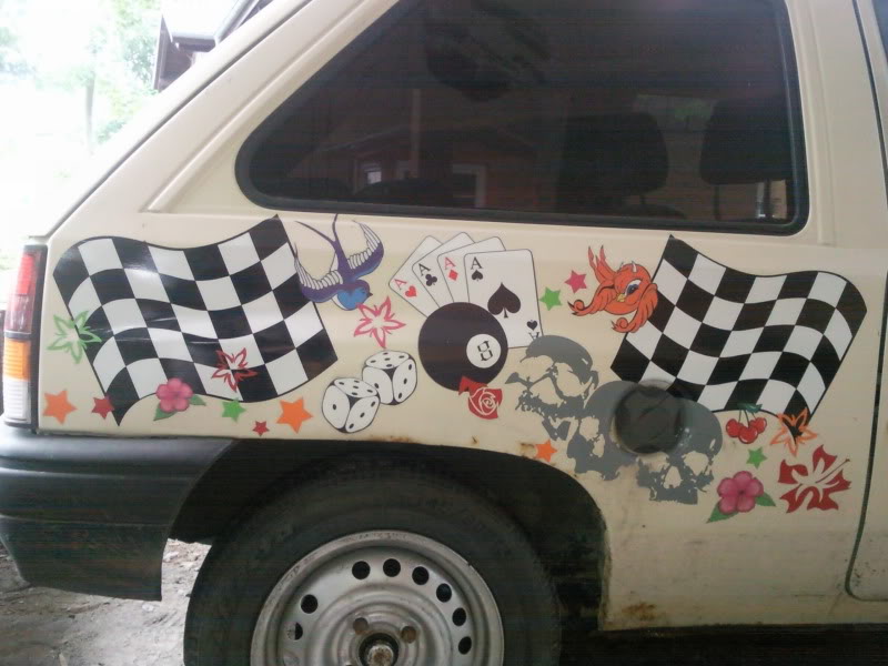 Zur Zeit fährt er so rum... Ist noch nichts spektakuläres aber leider fehlt mir der Platz um mehr zu machen... Er hat etwas Rost,nichts schlimmes, ausser am rechten Kotflügel, aber da liegt schon nen neuer da... der restliche Rost würde schonmal behandelt und kommt dann an anderen Stellen wieder, weil der Vorbesitzer, ein ganz schlauer, keinen Klarlack draufgetan hat... Naja, nen falscher Tacho war auch drin, hab ich aber auch schon geändert!