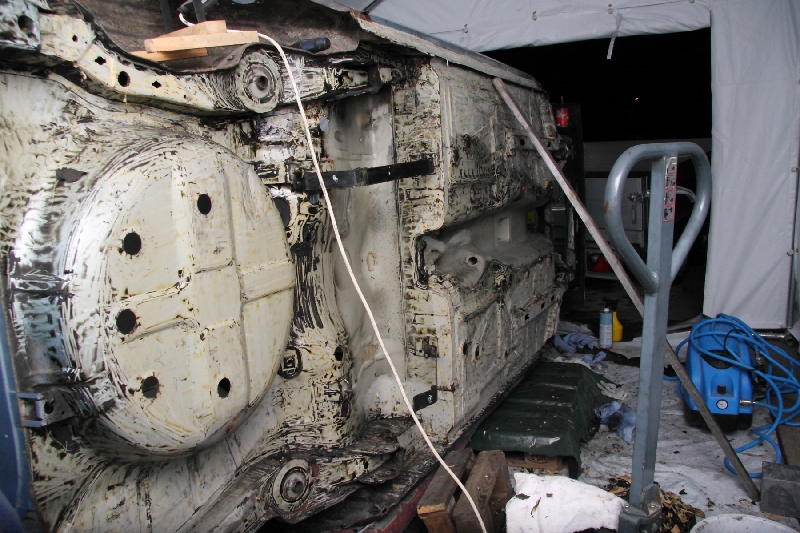 Dafür konnte ich den Lack dann mit einer einfachen Bürste abschrubben... incl. 1-2mm dickem Unterbodenschutz. :mrgreen: