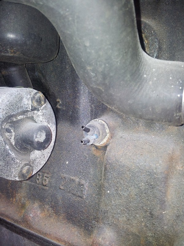 Das Teil am Motorblock ist ein Thermoventil, das bei warmen Motor öffnet.