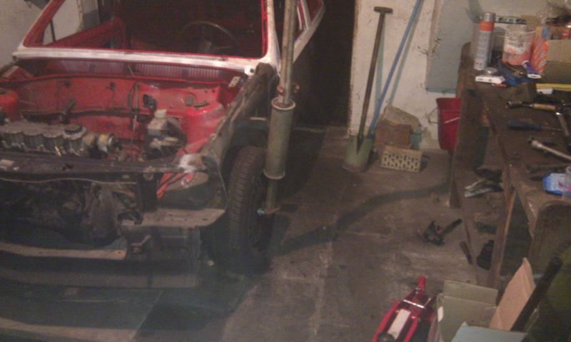 gestern und heut wieder einige zeit verbracht und gut geschafft.freitag abend die antriebswellen gezogen. dabei musste n mittelschaldämpfer als verlängerung herhalten um die sehr fest sitzende radschraube zu lösen.und heut den motor raus gekloppt.alles allein
