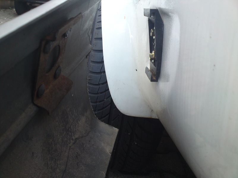 Nach Anpassung an den Breitbau fehlten natürlich die originalen Halter,außerdem hätte ich da schon wieder neue Löcher ins Auto bohren und alte zu schweißen müssen...also hab ich die Vorface-halter an die Facelift-Stoßstange gescheißt(Kunststoffschweißkolben und PlastikKleiderbügel)