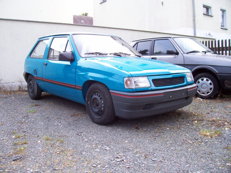Gekauft hab ich den Wagen im Sommer 2012. Danach folgte ne Menge Arbeit. Vorn hatte er einen kleinen Auffahrunfall, also neuer Schlossträger, Haube und dann das übliche, Radläufe erneuern, Opelgold entfernen. Zum Schluss hab ich ihm noch eine Neulackierung spendiert, wieder im Originalfarbton, ein 60 / 40 Fahrwerk, neuen Unterbodenschutz. Eine Achsmanschette und Spurstange wollten noch gewechselt werden, frischer Unterbodenschutz und Hohlraumkonservierung. Für nächstes Jahr hab ich schon ein paar 15 Zoll Stahlfelgen parat, hab sogar die Auswahl. Einmal vom G Astra, eine ET 49 oder vom D Corsa mit einer ET 39. Die werden dann silbern lackiert um den originalen Look ein bißchen zu erhalten. Momentan überwintert er erstmal in einer trockenen Garage. So und nun Bilder!