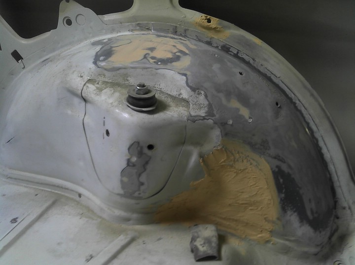 Also die Felgen habe ich mit 10er Spurplatten pro Seite montiert und die Radläufe dann mit einem Hammer verbreitert, dann mit Jens verzinnt, den Rest macht der Lackierer.