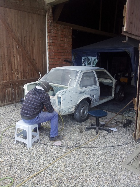 Hier muss ich nochmal sagen das ich echt Glücklich bin eine soo gute Basis zu haben, denn ich musste nichts schweißen oder übermäsig spachteln! Und nur daher und dank meiner 2 besten Freunde (die beide auch Autonarren sind) war diese schnelle Aufwertung meines kleinen Möglich!