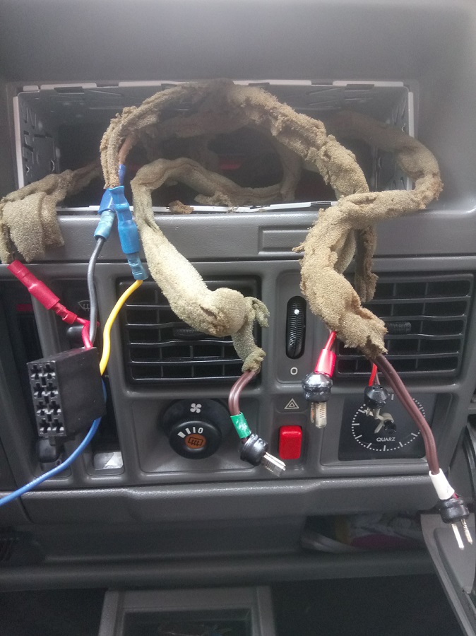 auszubauen, da der Radiokabelbaum auch zum Teil an anderen Kabelbäumen mit Isolierband und ähnlichem festgemacht war. Aber immerhin, die Arbeit