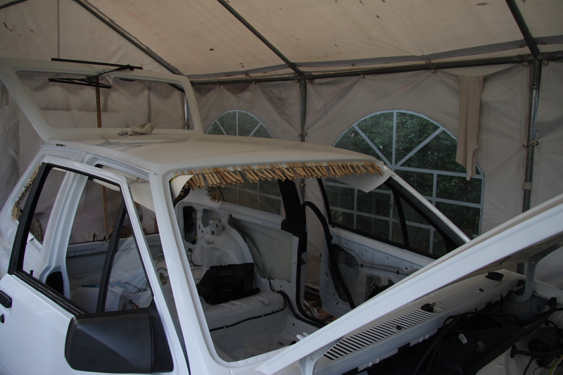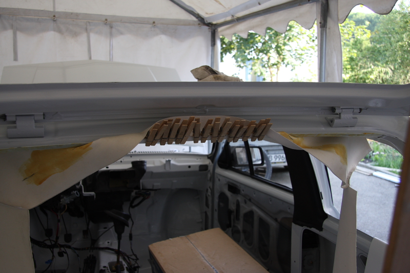 Zum Teil hatte es auch damit zu tun, dass einzelne Ersatz-Teile nicht da waren. Gerade was den Himmel angeht. Ohne den geht fast gar nix, da sämtliche Verkleidungsteile drübermontiert sind.