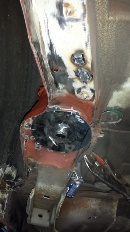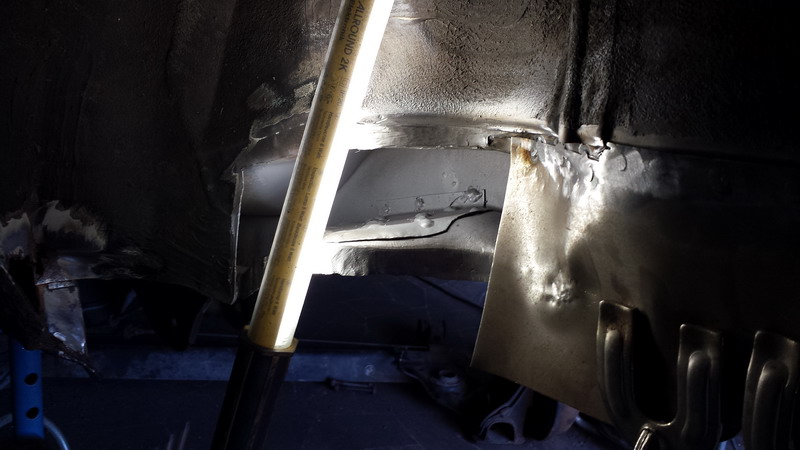 Jetzt alles neu rein Schweissen Blech unter dem feder teller neu gemacht mit 2mm blech.Auch im holmen das blech zur verstärkung ein 2mm blech noch rein.Dann den feder teller in 3mm Blech neu gemacht und alles verschweissen.
