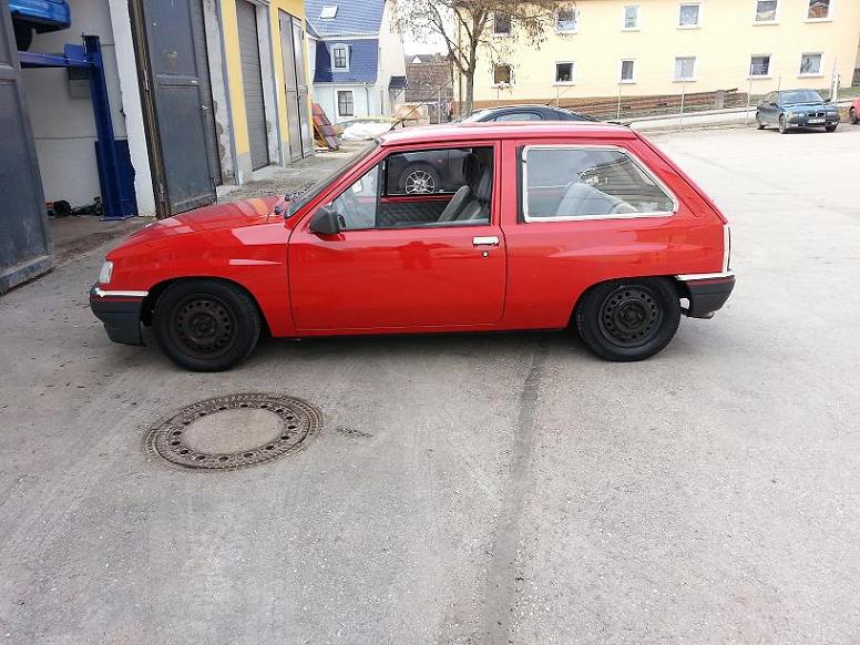 Hallo ich stelle mich hier erst mal vor. Ich bin der Andi bin 23 und komme aus der Nähe von Nürnberg. Habe vor 4 wochen meinen Fuhrpark um einen weiteren Opel vergrößert. An Fahrzeugen habe ich einen Opel Astra G Caravan Opc, für den Winter einen 1.4 Tigra und jetzt noch meine neueste Errungenschaft. Opel Corsa A 1.4. Zum Corsa, die substanz ist eine glatte 1. Habe ihn jetzt in 4 Tagen mühevoller Arbeit erst einmal aufpoliert. Ein KW Variante 2 inox Gewindefahrwerk habe ich ihm ebenfalls schon spendiert. Basuck Gruppe A ab kat hat er auch bekommen