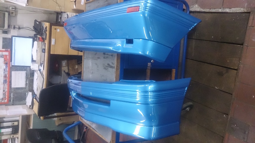 Ich hab es endlich geschafft die neuen Stoßstangen zu Füllern, "Endlich" deshalb weil sich mindestens 25 Jahre Kunststoffteile ganz schön wehren können bis da wieder was drauf haftet.