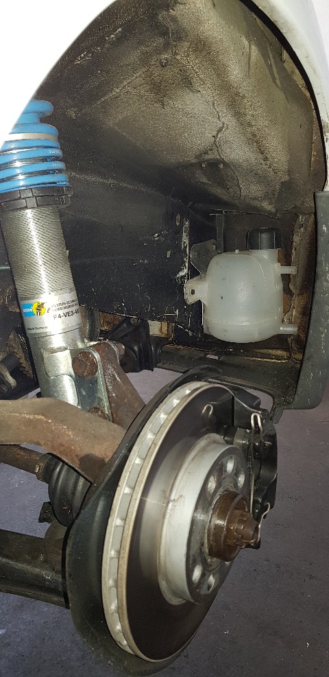 Ich bin aber immer noch auf der Suche nach dem Behälter für die Scheibenwaschanlage, welcher im Radlauf sitzt.