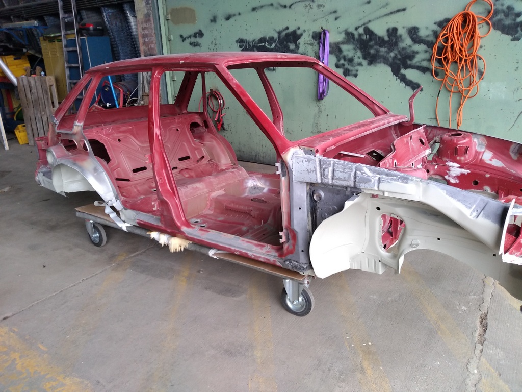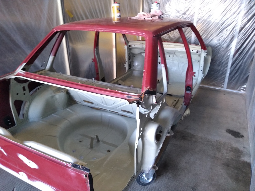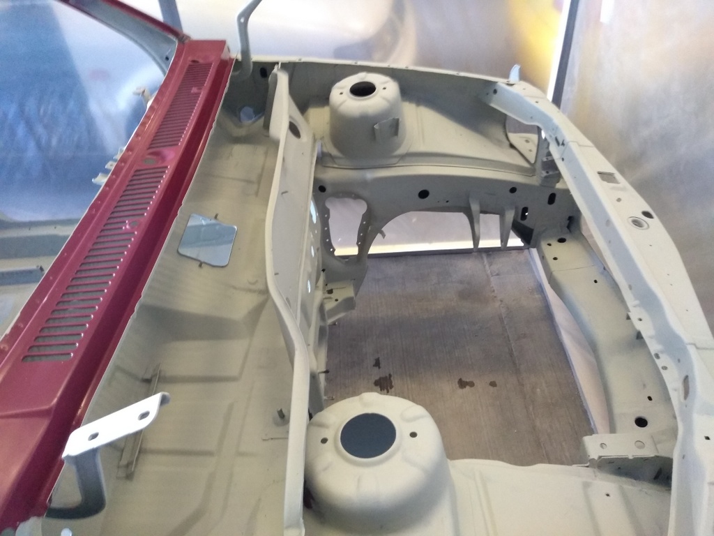 Schweißarbeiten waren soweit fertig und habe damit begonnen den Motorraum/Kofferraum und Innenraum zu grundieren.