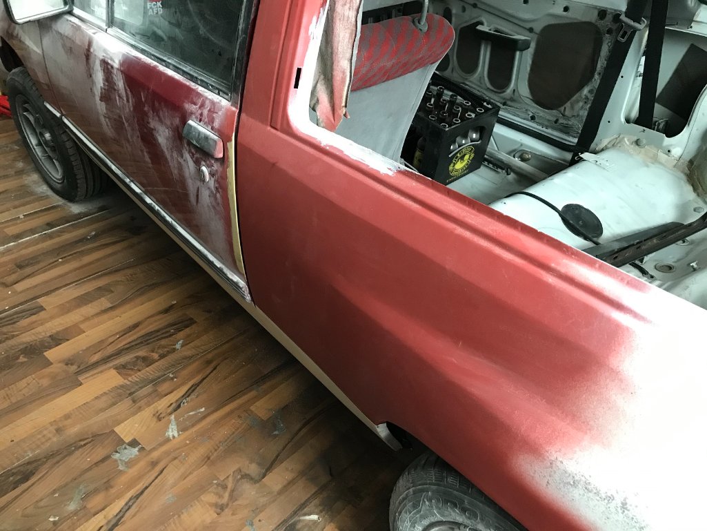 Ich habe dann den Simon kennengelernt und er hat sich angeboten, die linke Seitenwand aus dem Schlachter einzuschweißen. Weitere Teile wie z.B. Irmscher Felgen in 6x15, GSI Heckstoßstange und Heckspoiler und ein Heigo Käfig mit Flankenschutz haben ihren Weg zu mir gefunden. Der Käfig hatte mehrere Schichten Lack und wurde komplett blank geschliffen. Für den Käfig und die Felgen habe ich mir jeweils Gutachten bei den Herstellern besorgt.