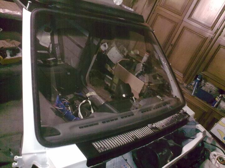 Wir haben jetzt die Frontscheibe wieder eingesetzt und das Armaturenbrett ist auch schon fast komplett drin aus dem anderen JOY. Habe bei der Gelegenheit gleich die grauen Gurte aus dem eingebaut. Meine hatten Schimmel angesetzt.