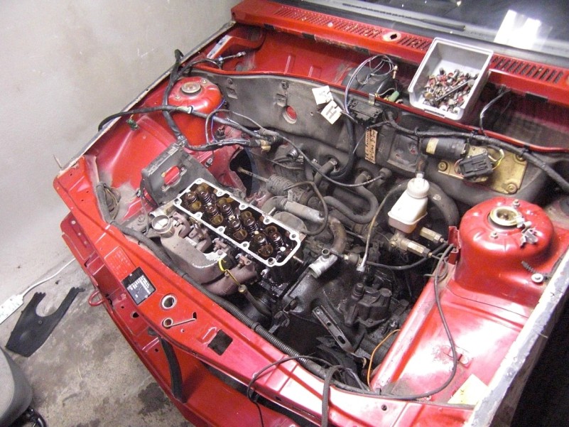 Also hab ich heut nach Arbeit einfach ma angefangen den Ersatz-Teil-Motor zu zerlegen, von dem ich Kopf und dazugehörige Nockenwelle brauch.