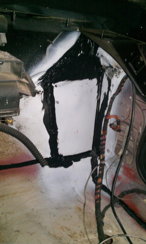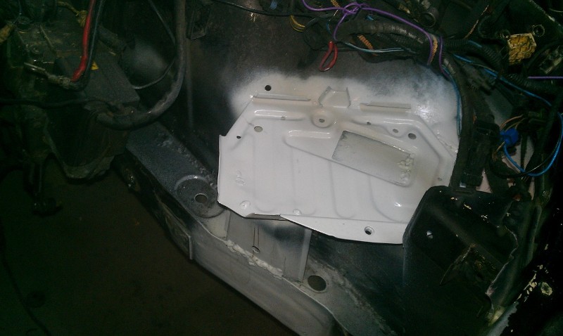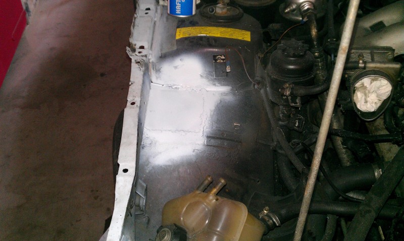 Radlauf auf der Beifahrerseite hab ich innen sowie außen ersetzt, und den Längsträger Fahrerseite repariert, und ein neues Batterieblech eingesetzt.
