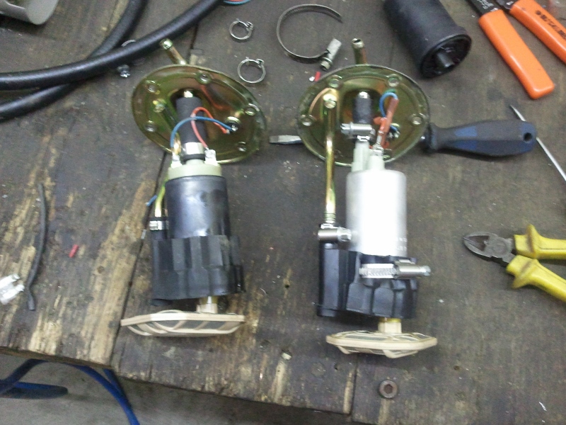 Auf dem unteren Bild ist links die Originalpumpe, rechts die Tigrapumpe zu sehen. Leider musste die dann optisch doch noch Federn lassen. Man sieht auch eigentlich schon dass die etwas zu lang ist.