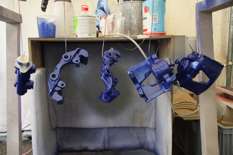 Dank CorsaDaniel hab ich ja jetzt auch die passenden Halter für meine neue Bremsanlage. Natürlich waren die Teile dem Alter entsprechend. Also kurzerhand gestraht. Danach eben noch grundiert und passend zur Bremstrommel und BKV in RacingBlue + Pearl-Pigmente. Hmmm.