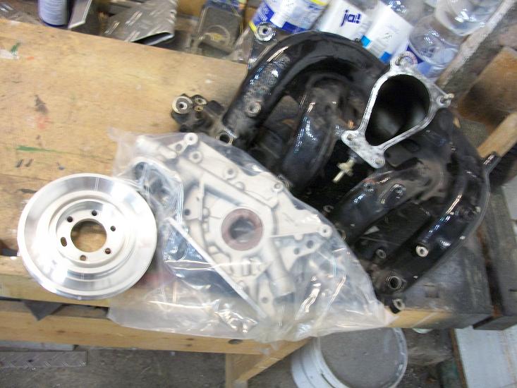 Eine Aluriemenscheibe, eine neue etwas längere Tachowelle und