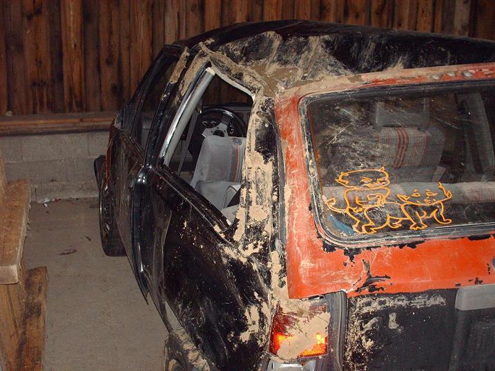 Nur das Dach war vom Schrotti, dank Stahseil, schwer geschädigt.