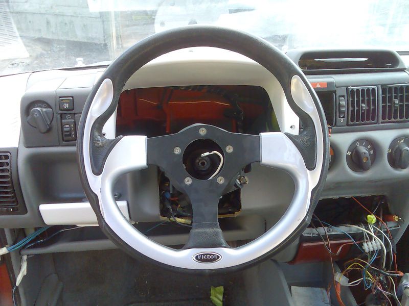 das lenkrad bekam ich nicht raus.wollte auch nicht auf der nabe rum schlagen,auch wenns egal gewesen wär,ob die lenkung dabei kaputt geht.war eh nicht sooo scharf auf ein lenkrad,daß sich jeder in sein auto bauen kann,da es diese wie sand am meer in tuningshops gibt.