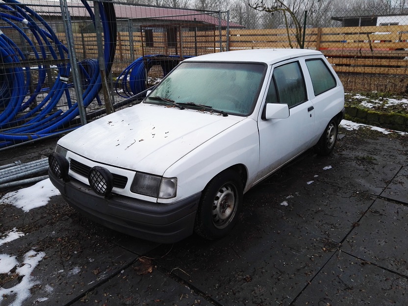 Hier mal 3, ein Corsa 150€. Die Bude hat seit Jahren keinen Tüv, aber! Neue linke Tür, neue Frontscheibe samt Gummi, billig Gewindefahrwerk, 2 schöne GSI Sitze und zu guter letzt einen Satz sehr guter Winters (2 fast neu) auf kurioserweise sehr leichten Opel Alus.