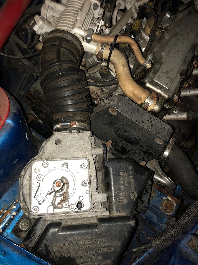 Wahrscheinlich ist der falsche Luftfilterkasten verbaut, sieht aus wie der vom C16SEi, also der mit dem Irmscher Steuergerät.