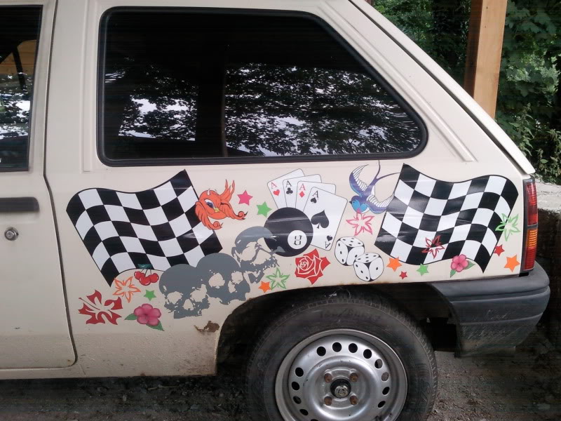 Zur Zeit fährt er so rum... Ist noch nichts spektakuläres aber leider fehlt mir der Platz um mehr zu machen... Er hat etwas Rost,nichts schlimmes, ausser am rechten Kotflügel, aber da liegt schon nen neuer da... der restliche Rost würde schonmal behandelt und kommt dann an anderen Stellen wieder, weil der Vorbesitzer, ein ganz schlauer, keinen Klarlack draufgetan hat... Naja, nen falscher Tacho war auch drin, hab ich aber auch schon geändert!
