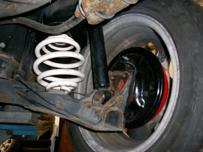 So hab mal für zwischendurch ein paar Bilder vom weissen GSI... hab das Irmscher-Fahrwerk vom blauen eingebaut, die kompletten Trommeln vom blauen eingebaut und festgestellt das die Zangen vom blauen nicht passen weil der GSI innenbelüftete Scheiben hat die natürlich dicker sind und desshalb andere Zangen (wieder mal was gelernt