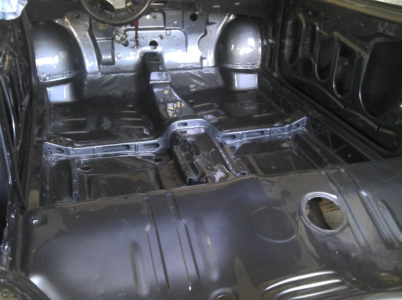 Freitag haben wir das Grundgerüst des Käfigs eingebaut. Den Unterboden mit Steinschlagschutz besprüht. Die Hinterachse und den Tank eingebaut.