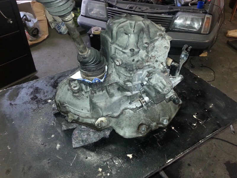 mein motor war zwischenzeitlich eh draussen, da ich im motorraum den lack nochmal ausbessern wollte und auch weil das ablängen des kabelbaums so einfacher war. also getriebe ab, kupplung neu (die kam ja noch aus dem gleichen auto wie das f13).