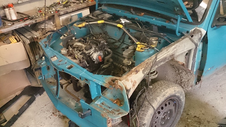 Ja Frontblech und Scheinwerfermasken sind für nen Facelift gar nicht so schlecht erhalten die Spritzbleche und den Schlossträger Oben muss ich etwas nachschweissen , die Dome haben auch schon bessere Zeiten erlebt sind aber noch in nem Zustand wo man sie retten kann , vom Miami blau ist Leider nicht mehr so viel vorhanden daher auch der komplette Farbwechsel dann :roll: