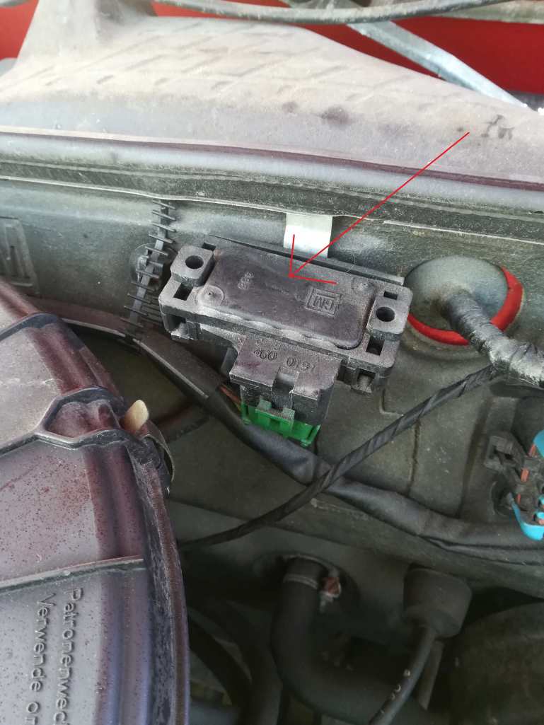Kann mir jemand zufällig sagen um was für ein Teil es sich auf dem Bild handelt (roter Pfeil) ? Scheint wohl jemand mal draufgeklopft zu haben, so sieht es zumindest aus. Motor: C14NZ / Corsa A BJ 1990