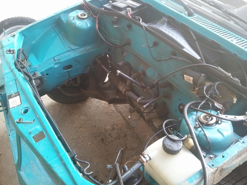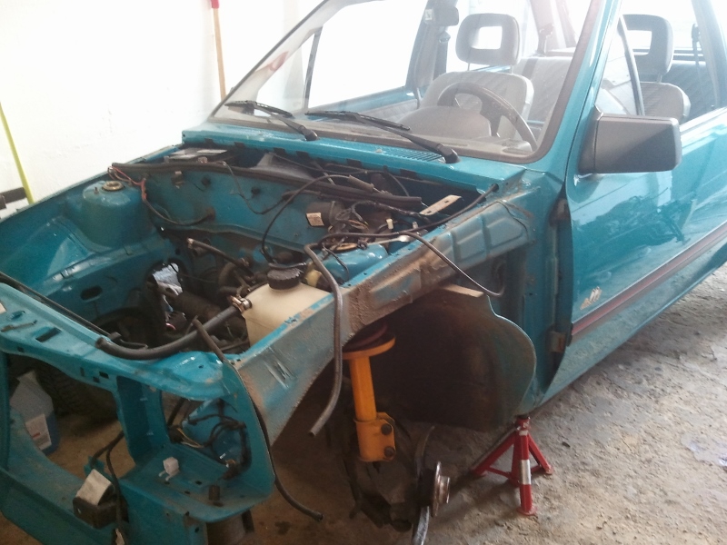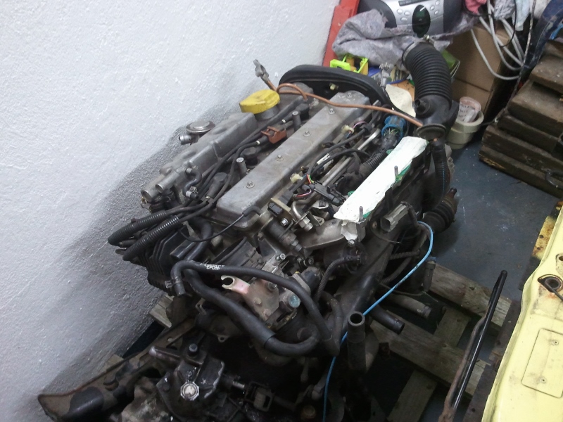 Vor allem haben wir mit einem original Wagenheber eines Corsa A, der eigentlich für einen Radwechsel gedacht ist, die Karosse mittels Brettern soweit angehoben das wir den Motor quasi rausziehen konnten...zum Glück ging das gut, das war ne ganz schön wackelige Angelegenheit!