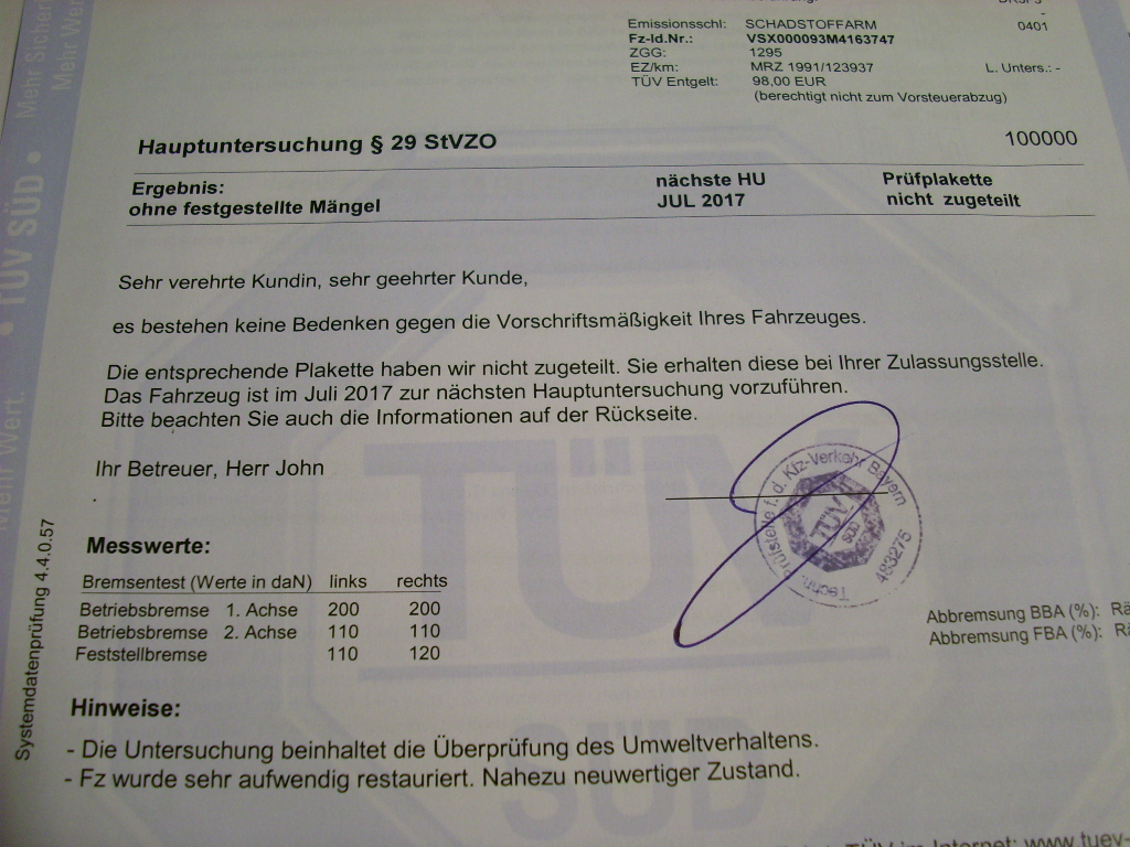 Werd demnächst mal beim TÜV vorbeifahren, mal mit dem Prüfer sprechen und Termin machen. HU und die ganzen Eintragungen.