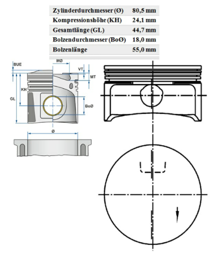 Also laut MAHLE Katalog hat der 12ST Kolben folgend Maße: