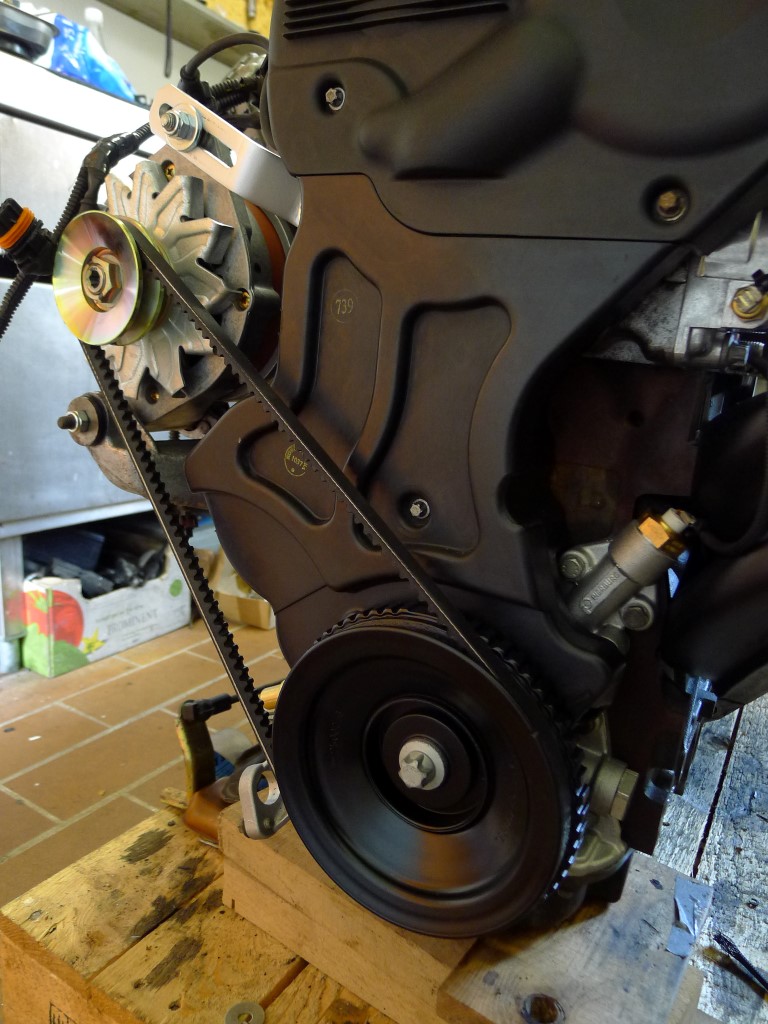Keilriemen fluchtet, man muss die Lima vom C16SE nehmen, die hat ein Distanzstück unter der Riemenscheibe.
