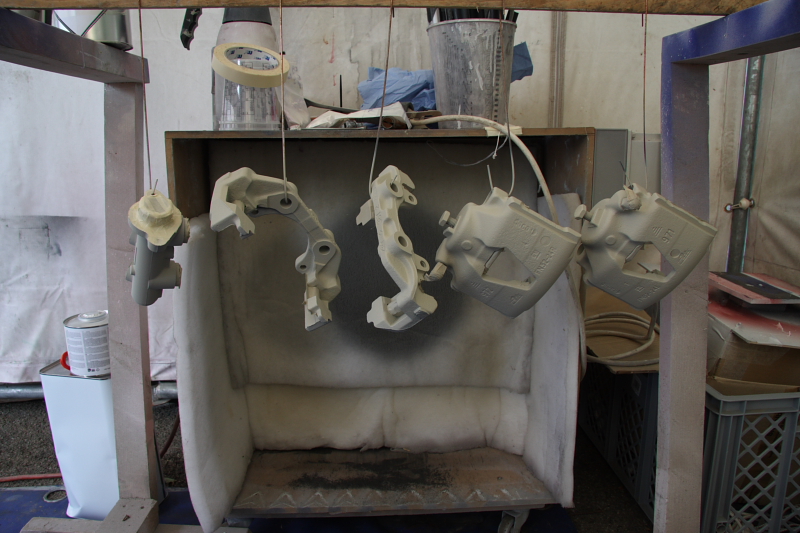 Dank CorsaDaniel hab ich ja jetzt auch die passenden Halter für meine neue Bremsanlage. Natürlich waren die Teile dem Alter entsprechend. Also kurzerhand gestraht. Danach eben noch grundiert und passend zur Bremstrommel und BKV in RacingBlue + Pearl-Pigmente. Hmmm.