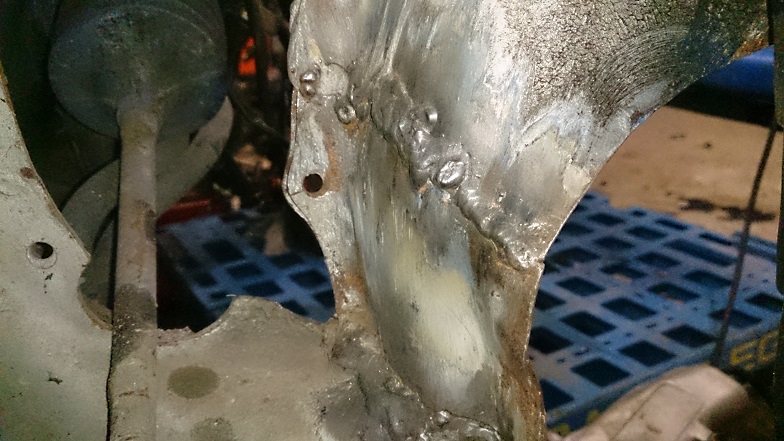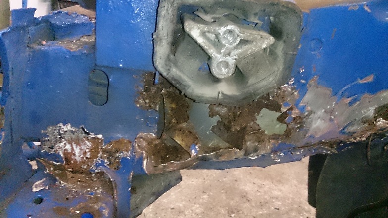 So weiter gehts Motor ist draussen und dann kam die Böse überrachung .... Rahmen rechts rings um den Motorhalter incl. Verstärkung durchgerostet ausserden hängt der Vorderwagen rechts fasst 2cm zu tief