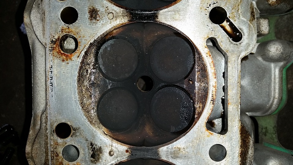 Bemerkenswert letzte Bild da ist der vierte Zylinder zu sehen wo die DIchtung schief saß . Gemisch bei den anderen zu fett ?