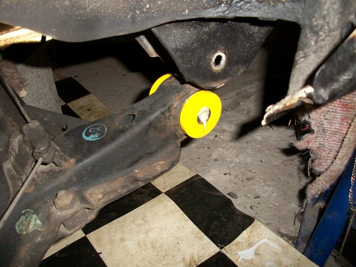 Die Gummilager der Hinterachse ließen sich ohne große Gegenwehr nach leicht abgelassener HA austreiben.