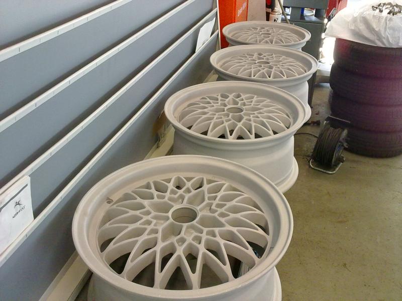 Die Felgen werden Exip`s in weiß in den Maßen 7X 15 ET 38 mit 195/45/15 .