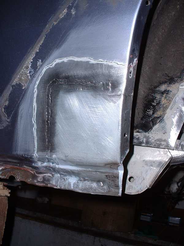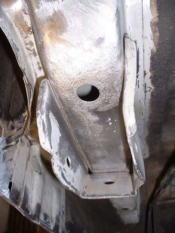 Die schönsten Schweißarbeiten hab ich mir ja zum Schluss aufgehoben. Gestern hab ich dem Längsträger hinten links endlich das aufbereitete Vorface-Spenderteil incl. Federteller (Danke Jens!